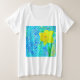 Ce t-shirt affiche un collage numérique composé de plusieurs couches de peintures, de textures et de scans. La jonquille ensoleillée "apparaît" sur le fond bleu.