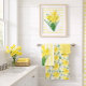 Bienvenue à votre famille et à vos invités dans votre salle de bain avec ce joyeux kit de daffodils jaunes imprimé de serviettes de toilette. . Cette salle de bain est ornée d'un bouquet de jonquilles dessiné graphiquement sur la serviette de bain, d'un imprimé fleuri sur la serviette de bain et d'un tissu jaune solide sur le lavabo. Accentez le décor de votre salle de bain avec ces serviettes de fleurs jaunes gaies posées au printemps. Ce serait adorable pour Pâques ou la fête des mères.