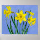 Ciel bleu avec jonquilles jaunes affiche d'aquarelle botanique détaillée. Impression d'une peinture botanique originale sur papier pressé chaud à l'aide d'aquarelles et de gouache Winsor & Newton. © Peint par Sarah Trett www.sarahtrett.com pour www.mylittleeden.com