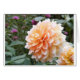 Une belle dahlia couleur pêche orne ces produits.