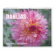 Célébration du calendrier du mur de Dahlias présente 12 mois de photos originales montrant une variété de fleurs de Dahlia.