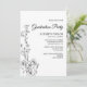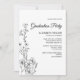 Cette carte dainty élégance graduation party d'invitation est parfaite pour une grande fête minimaliste. Le design floral présente un agencement sobre et élégant de fleurs sauvages noirs et blancs délicats jumelés à une police calligraphique romantique. Personnalisez le dos avec une photo et l'année de graduation.