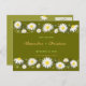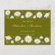 Les marguerites ont conçu une carte postale. Elégant, entièrement personnalisable à utiliser pour les invitations, enregistrer la date, faire-part, rsvp, carte pour mariages, fêtes, douche nuptiale, fiançailles et toute autre occasion spéciale. Cliquez sur le bouton "Customiser" pour modifier les couleurs ou les polices du texte. Design original par Ruxique. Recherchez les éléments correspondants de cette collection.