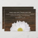 faire-part de mariage avec l'image d'une marguerite regardant du fond sur un arrière - plan de bois d'écorce brun foncé. Personnalisez le texte avec les détails de votre occasion.