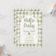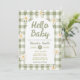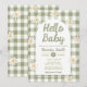 Welcome your little one with this charming Hello Baby shower invitation. Designed with a soft sage green gingham background, sweet white daisies, and a modern arch layout, this invitation is perfect for a neutral, garden, or spring baby shower.