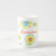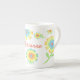 jolie porcelaine, bonne dimension effet brillant bien dans l'ensemble. Le motif et les couleurs sont réussis.Je trouve néanmoins dommage de ne pas occuper tout l'espace avc le motif car la partie rouge au dos de la tasse est trop présente et pas intéressante visuellement.