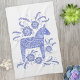 A traditionnel Swedish Dala Horse design in periwinkle blue and white.