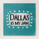 "Dallas Is My Jam" est un design de texte amusant avec une forme d'accent blanc entourée de points blancs texturés.