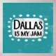 "Dallas Is My Jam" est un design de texte amusant avec une forme d'accent blanc entourée de points blancs texturés.