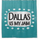 "Dallas Is My Jam" est un design de texte amusant avec une forme d'accent blanc entourée de points blancs texturés.