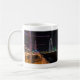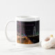 Tasse à café - J'ai pris cette nuit photo d'art de la belle silhouette de Dallas Texas du pont piétonnier Ronald Kirk par une froide nuit d'hiver. Le pont de droite est le pont Margaret Hunt Hill. Vous recherchez plus d'impressions ou de produits ? N'hésitez pas à visiter mon magasin : http://www.zazzle.com/timelessmomentsphtgy Cette photo a été prise par Jennifer White with Timeless Moments Photography. Toutes les images sont protégées par copyright © Timeless Moments Photography.
