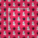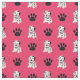 Ce tissu dalmate est parfait pour ceux qui aiment cette race de chien. L'motif vient en formation de points avec des empreintes de pattes noirs et des dalmatiens illustrés. Le arrière - plan est rouge.