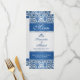 Motif damassé bleu foncé sur un dégradé argenté arrière - plan Carte Mariage Menu Rack.