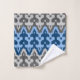 Serviette sertie dans un motif damassé d'inspiration marocaine d'entrelacement de formes fleur de lis positives / négatives avec une texture rayée, Ikat tissée - bleu marine et moyen cérulean avec gris foncé et clair / gris