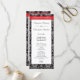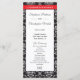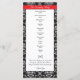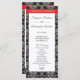 Programmes mariage damassé avec bande d'accent rouge et motif damassé noir et blanc formel.