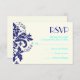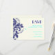 Elégant motif damassé bleu marine, aqua, mariage ivoire RSVP réponse/réponse carte. Un design mariage moderne mais classique avec une touche rétro. Un design mariage délicat et vintage, parfait pour un mariage de printemps ou d'été contemporain ou traditionnel.