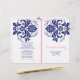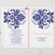 Elégant motif damassé bleu marine, rose plié mariage cérémonie et programme de fête. Un design mariage moderne mais classique avec une touche rétro. Un design mariage délicat et vintage, parfait pour un mariage de printemps ou d'été contemporain ou traditionnel. Il faut le plier au centre. Choisissez seulement ce type de papier-valeur comme il se plie bien.