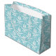 Ce sac cadeau de grande taille est présenté dans une jolie couleur aqua avec un imprimé damassé blanc. Customisez ce sac ou achetez-le tel quel.