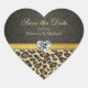 Damask Elegant Leopard thème Enregistrer l'autocollant de date avec champ de texte personnalisable et diamant de coeur.