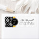 Étiquette d'adresse de retour de Faire-part de mariage Monogram F avec damas noir et blanc et couleur d'accent jaune. Customisez avec votre initiale monogramme, nom et adresse. Choisissez aussi la couleur arrière - plan et la couleur monogramme. Copyright Elke Clarke et les concédants.
