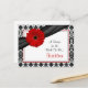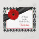 Le texte sur cette carte de recette rouge marguerite noir et blanc damassé pour la mariée est entièrement personnalisable. Vous pouvez le modifier à l'aide de l'option personnalisée. Pour effectuer des modifications plus poussées de la carte postale, y compris la modification de la police, de la couleur de police ou de la disposition de la police, choisissez l'option personnaliser. Cette carte de recette de marguerite rouge peut être jointe à l'invitation de la douche nuptiale correspondante afin que les invités de la douche nuptiale puissent remplir le dos avec leurs recettes préférées et apporter la carte avec eux à la douche comme un gardien mariage pour que la mariée soit. Vous pouvez également l'utiliser dans une invitation de fête d'anniversaire en modifiant le texte sur l'invitation et cette carte. L'invitation correspondante est présentée ci-dessous.