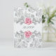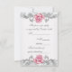 Elégante rose rose rose damas filles Première Sainte Communion invitation RSVP. Cette belle couleur argent gris et rose rose première communion RSVP est facilement customisée pour votre événement en ajoutant vos détails d'événement, le style de police, la taille et la couleur de police et le libellé.