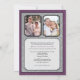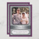 Fêtez ce couple spécial avec cette invitation à la fête de l'anniversaire d'argent. Leur photo est posée contre un arrière - plan argenté à motif damassé avec une bordure violette profonde. (Assurez-vous de remplacer cette image avant par une grande photo haute résolution). Leur nom et leur date mariage (ou tout autre texte) sont indiqués sur la plaque en dessous. Ensuite, présentez-les comme ils étaient à l'époque et sont maintenant au dos avec toutes les informations de l'événement ci-dessous. Correspondance des faveurs et de l'affranchissement disponibles.