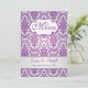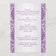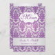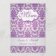 Motif damassé violet sur une invitation de menu arrière - plan argent. Les éléments correspondants sont présentés ci-dessous.