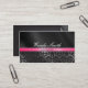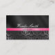 Arrière - plan saisissant de carte de damassé avec gris, noir et rose, avec des réflexions brillantes. Votre nom et titre vont d'un côté et l'adresse va de l'autre côté, où il y a un effet intéressant de boucle de page. C'est une carte chic et contemporaine qui regarde et se sent professionnelle, et est grande pour les cosmetologists, les coiffeurs, les raboteuses de cheveux, les boutiques, les wedding planners, les décorateurs etc. Elle est féminine mais forte !
