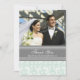 La photo faite sur commande de mariage vous remercient des chèques-cadeau dans le motif vintage léger élégant de damassé florale classique de vert de menthe de pastel, grise et blanche. Entièrement personnalisable, bilatéral, disponible dans beaucoup de produits assortis pour tous vos besoins de mariage ou de partie. Contactez-nous pour demander un changement de couleur ou pour le concevoir en fonction du client.