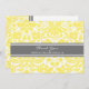 En épousant merci des chèques-cadeau en jaune jaune canari lumineux élégant, motif floral vintage classique de gris de charbon de bois et et blanc foncé de damassé. Entièrement personnalisable, bilatéral, disponible dans beaucoup de produits assortis pour tous vos besoins de mariage ou de partie. Contactez-nous pour demander un changement de couleur ou pour le concevoir en fonction du client.