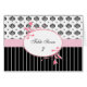 Une carte à la mode de nombre de table pour une réception de mariage avec un motif noir et blanc chic de damassé sur les filets supérieurs et impertinents sur le fond, divisée par un cadre floral rose girly. Personnalisez en ajoutant le nombre de table.