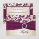 Cette carte-réponse élégante en damassé or pâle et bordeaux a un ruban imprimé prune et une broche en cristal qui correspond à l'invitation de mariage présentée ci-dessous. Si vous avez besoin d'autres articles assortis ou si vous souhaitez une autre combinaison de couleurs, veuillez envoyer un courriel à niteowlstudio@gmail.com avec votre demande. Les articles assortis sont présentés ci-dessous.