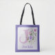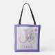 Sac femme élégant avec nom. Le design présente Monogram & Name avec Fleurs de chaque côté dans un style pastel couleur eau. Initial est la lettre J.