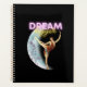 Design amusant et stimulant caractéristiques teinté vintage découpe photo de ballet danseur, floral décoré croissant lune et "rêve plus grand" texte néon sur l'arrière - plan noir