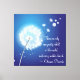 Un verset inspirant spécialement pour la mère - avec ce simple élégant dandelion sur un fond bleu riche - Parfait pour le bureau, la maison ou le lobby. Peut être facilement dimensionné vers le bas - Les devis facilement customisés sont pour votre propre message personnel.