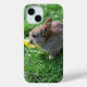 Une image délicieuse d'un mignon petit lapin captivé par un pissenlit jaune.