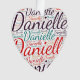 Danielle. Montrez et portez ce populaire beau prénom féminin conçu comme un nuage de mots coloré fait de lettrage à main horizontale et verticale dans différentes tailles et des couleurs fraîches adorables. Portez votre nom américain positif ou montrez au monde que vous aimez ou adorez. Merch avec cette oeuvre d'art en texte souple est un grand cadeau, pas seulement dans le mois de l'histoire des femmes, ou cadeau d'anniversaire.