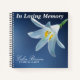La couverture est décorée d'une belle Lily blanche sur un arrière - plan bleu pour célébrer la vie de votre être cher. Vous pouvez personnaliser le nom et les dates sur la couverture.