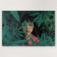Ce puzzle d'art du jardin présente le portrait d'une jeune femme aux cheveux noirs entourée de feuilles verts, dont le visage est à moitié dans l'ombre. Il ferait un beau cadeau pour un passionné de scie.