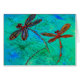 De magnifiques libellules rouges et bleues sur un arrière - plan bleu et vert turquoise et marbré. De mon oeuvre originale de libellule. LyndseyArt