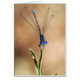 Un danseur mâle à anneaux bleus damselfly (31-36 mm) atterrit, puis s'envolait et atterrissait à nouveau sur un morceau d'herbe. Quand il atterrit ses ailes sont encore légèrement écartées de son combat précédent. En été, les danseurs à anneau bleu sont très présents dans le sud-ouest. Ce mâle a été trouvé à Gilbert, Arizona. Photo de Ruth Jolly.