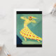 Illustration Art Déco en jaune et vert avec une touche de rouge. Des lignes angulaires et des formes géométriques sont utilisées pour montrer un danseur gracieux.