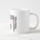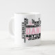 Jumbo Certains jours, une tasse de joe de taille régulière ne le fera pas. Quand vous avez besoin d'une dose de caféine en plus, utilisez votre tasse XL de Zazzle. Peut contenir jusqu'à 591 ml. Idéal pour des soupes, céréales, glaces et du chili aussi ! Cette tasse géante à une anse en forme de C pour une utilisation confortable. Dimensions : Hauteur : 4,5" Diamètre : 3,9" Capacité : 20 onces Micro-ondes et lave-vaisselle sans danger Construction céramique forte Satisfait ou dépasse les exigences de la FDA en matière de salubrité des aliments et des boissons Conseil du concepteur : Pour assurer l’impression de haute qualité, veuillez noter que l’aire de conception personnalisable de ce produit mesure 4" de haut x 10,5" de large