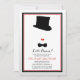 Une invitation étonnante avec chapeau haut, cravate arc et lèvres rouges. La carte est double encadrée en noir et rouge contre un arrière - plan blanc. <br/>() La carte est facile à customiser avec votre libellé, police, couleur de police, options de forme de papier et choix de six types de papier.<br/>() Pas exactement ce que vous cherchez? Tous nos produits peuvent être conçus sur mesure pour répondre à vos besoins sans frais supplémentaires.<br/>() Il vous suffit de nous contacter à askpixieprints@aol.com. b) a) Coordonner les produits disponibles : Demande-nous !