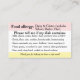 Rendez-vous plus sûr avec cette carte de restaurant pour allergie au gluten. Conçu en taille carte de visite, cet outil pratique communique clairement les besoins alimentaires aux chefs et au personnel de cuisine. Avec un espace pour écrire le numéro de table et l'entrée, il peut être placé avec un repas tel qu'il est préparé, assurant une sécurité supplémentaire pour ceux qui ont la maladie coeliaque ou l'intolérance au gluten. Facile à transporter dans un porte-monnaie ou un porte-monnaie, cette carte aide à réduire le stress dans les restaurants, les cafétérias scolaires et les événements. Un must pour toute personne qui vit sans gluten ou qui gère les allergies alimentaires.