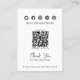 Carte d'affichage pour bijoux QR minimal moderne : Ajoutez un air de sophistication à votre représentation de marque avec ces cartes d'affichage pour bijoux élégantes avec un design botanique noir et blanc. Parfait pour les boutiques de mode qui s'adressent à une clientèle féminine. Placez votre emblème commercial en haut. Il y a des cercles marqués pour boucles d'oreilles et colliers - gardez, déplacez ou supprimez-les de la conception comme vous le souhaitez avant de commander. Un subtil contour de feuille botanique grise orne l'avant de la carte. Retournez-le pour révéler votre visibilité en ligne (informations sur les médias sociaux et le site web), et un code QR enrichit le fiançailles client, suivi d'une note de remerciement et d'un message personnalisé ou d'un slogan distinctif en bas. Supprimez une partie ou la totalité des icônes des médias sociaux, ou gardez-les comme vous voulez ! Explorez notre assortiment coordonné pour une solution de marque complète.