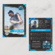 Cette carte de baseball personnalisable est parfaite pour célébrer votre joueur préféré. Avec son design bleu et noir audacieux et un espace pour la photo d'un joueur, les statistiques, et un arrière - plan personnalisable, cette carte est sûr d'impressionner n'importe quel fan de baseball. Parfait pour les cadeaux d'équipe, la soirée senior, ou juste une façon amusante de montrer votre soutien pour votre joueur préféré.
