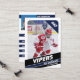 Les parents de jeunes joueurs de hockey sur glace dans de petites ligues peuvent fièrement afficher les réalisations de leurs enfants sur la glace à l'aide de ces cartes commerciales personnalisables bleu et blanc. Les photos avant et arrière peuvent être ajustées pour attirer l'attention sur votre jeune joueur, ce qui permet un numéro de Jersey changeable. Presque tout le texte sur le dos de la carte est modifiable, couvrant les statistiques du joueur, bio, et position. Ces cartes sont suffisantes pour partager entre amis et en famille, et pour que votre enfant puisse échanger avec d'autres jeunes qui possèdent leurs propres cartes de commerce de collection. Cette collection forme un ensemble unique de cartes de hockey sur glace, parfait pour des occasions de cadeaux uniques.