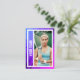 Commémorez votre tournoi de tennis double résultats avec cette carte de trading personnalisée. Téléchargez vos propres photos de joueurs de tennis à l'avant et à l'arrière, et modifiez le texte pour entrer votre nom et aussi le nom de votre équipe de tennis double, comme Simpson/Johnson, par exemple. Vous pouvez également modifier le texte pour entrer le nom de votre tournoi de tennis, ainsi que votre record de victoire/perte et le lieu où vous avez terminé. L'avant de la bordure de la carte est d'éblouissants rayons roses et violets. Le dos de la carte est occupé par un arrière - plan de tennis bleu avec des balles de tennis et une raquette de tennis.
